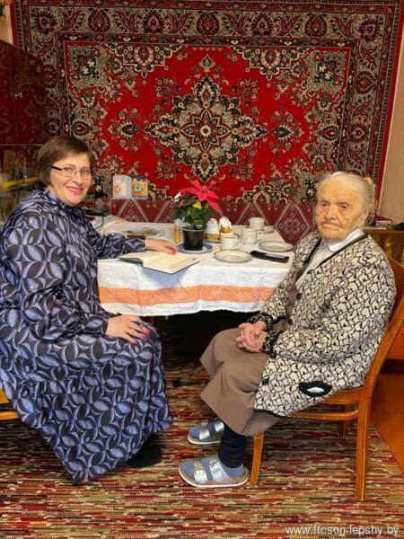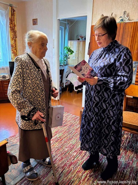 22 декабря 2025 года сотрудники ГУ «ТЦСОН Фрунзенского района г. Минска» поздравили с 95-летнием долгожительницу Фрунзенского района г. Минска, ветерана труда и просто интересную и обаятельную женщину Русецкую Анну Дмитриевну