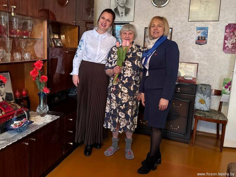 В преддверии прекрасного весеннего праздника — Дня женщин — заместитель главы администрации Фрунзенского района Ольга Германович, председатель Фрунзенской районной организации «Белая Русь» Игорь Тимашишин и директор территориального центра Татьяна Куиш чествовали ветерана труда Нину Николаевну Близнюк, сестру милосердия и заслуженного жителя Фрунзенского района города Минска.